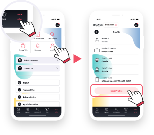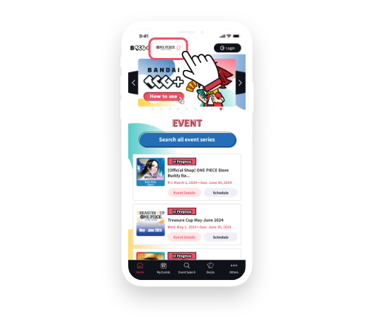 Logging in with a Bandai Namco ID and registering a profile are required to apply for events using BANDAI TCG+